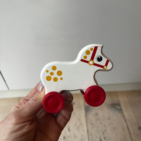 Skøn lille træhest i bøg m nylonhale. 16 cm...... 55kr