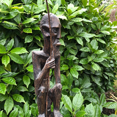 Stor indianerhøvding, håndskåret i træ., Ståltråd monteret bagpå, til nem ophængning. Ca. 60 cm høj og 40 bred. Kan bruges som hemmelig opbevaring eller skjuler af el skab. ??