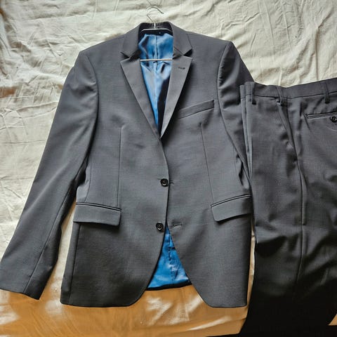 Flot Tessile D'oro habitjakke, mørk blå/lys grå ternet stof. Uld. Str. S.