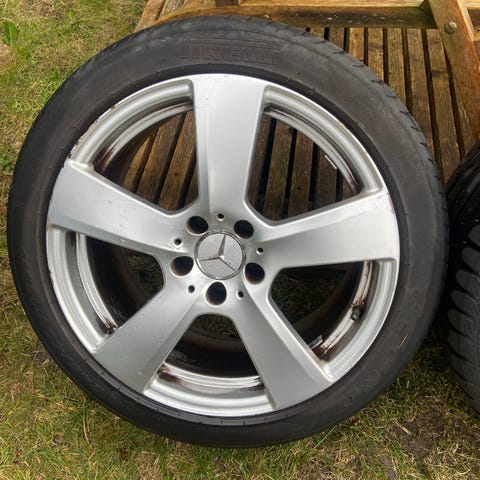 Alufælge, 18", Mercedes, sommerdæk, fælge med dæk, 2 nye dæk, 2 brugte, Originale Mercedes fælge