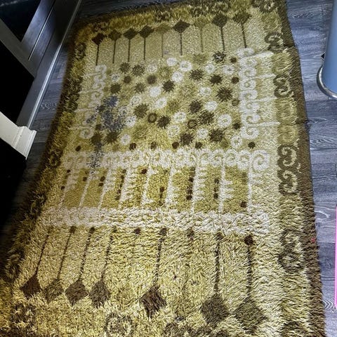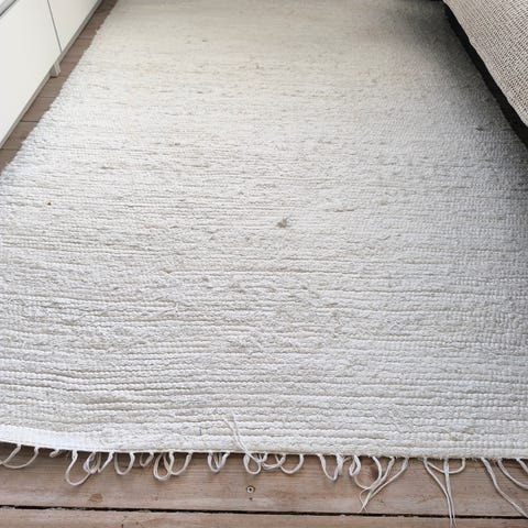 Håndvævet tæppe, Indisk, Flot håndvævet tæppe fra Indien (ubrugt). Farven er mest som på de to første billeder. Der er en lille afbleget plet ca. midt på, som man kan se hvis man zoomer ind på det sidste billede.