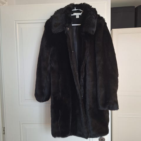 Frakke, str. 38, SHK Paris, Sort, Næsten som ny, Faux fur frakke med hætte