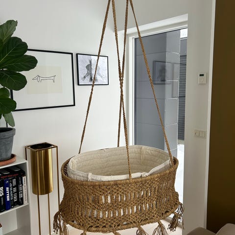 Vugge, Jute Hænge Vugge, Velholdt Pure-baby hænge jute vugge, med bund madras og ekstra kant pude.