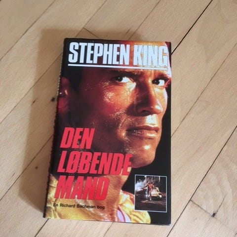 Den løbende mand, Stephen King, genre: krimi og spænding, Pæn indbundet spændingsroman med smudsomslag, Bogsamleren,1993, 237 sider.