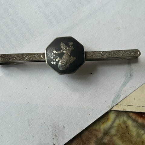 Slipsenål, sølv, Scrouples - SC, Sølvforgyldt - meget kraftig - med få brugsspor - Gaveæske medfølger.