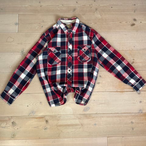 Skjorte, Retro, str. XL, Retro Grå, rød, gul og grøn flannel skjorte / Skovmandsskjorte