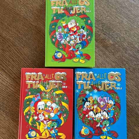Disney's, Juleklassiker, Anders And og en masse julehistorier. Kommer fra rygerfrit hjem og været opbevaret i en skuffe. Alle har pæne og velholdte omslag. Kanterne på siderne er alm gulnet et smule. Der er desværre skrevet navn i nr 4.