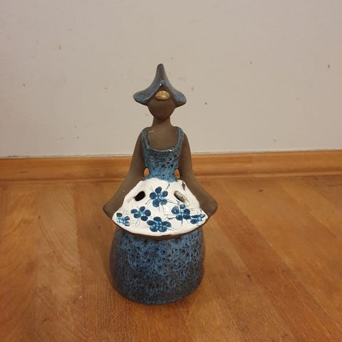 Flot glasur. Tørklæde, kjole og sko er glasseret.
