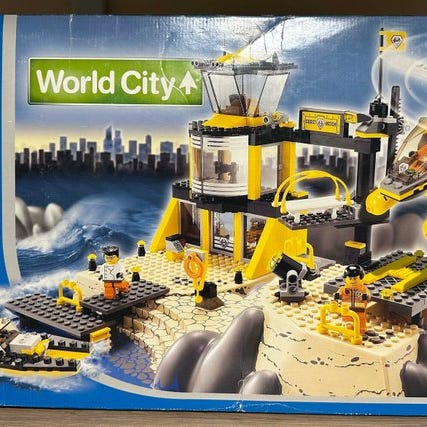 Lego World City, 7031, 7032. 7033. 7034, 7035, Omkring 20 år gammelt og generelt i god stand. Alle klodser er intakte, og alle sæt er komplette. Nogle af klistermærkerne har dog tydlige tegn på alder/slid, hvor nogle kanter er begyndt at løsne sig lidt og også knække helt af (se billeder for detaljer).