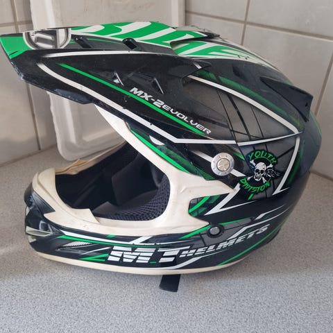 Hjelm, str. L, Mat sort, Børne cross hjelm str. L (se billede for mere info)
