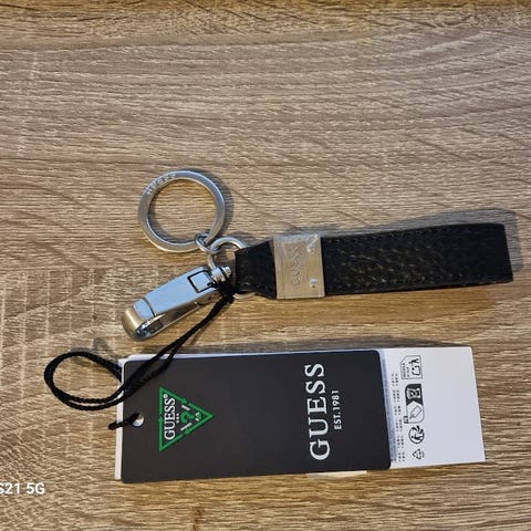 90er vintage nøglering fra det belgiske taske mærke Kipling. Nøgleringen er med firmaets kendetegn et abe ansigt i mix af oxideret metal, sort kunstlæder og messing øjne og med lang strop i kunstlæder.