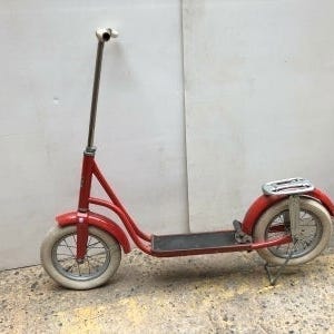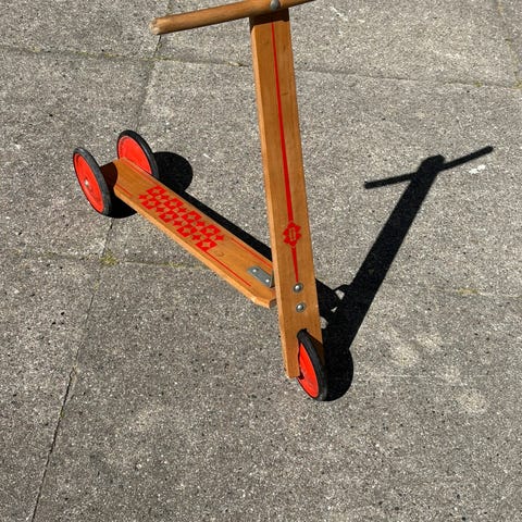 Legetøj, Gammelt Winther løbehjul, Nostalgisk og godt brugt, røde og hvide farver. Fra ca. 1970.