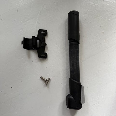 Cykelpumpe, Lille håndpumpe, Lille håndpumpe fra Crank Brothers i sort aluminium. Til presta og schraeder ventiler. Har en high volumen og en high pressure indstilling der skiftes med et vrid på håndtaget. Manometer ser ud til at være defekt. 17 cm lang.