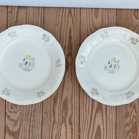 2 sjældne fade todelt i serien My Garden. Design Marianne Westmann for Rörstrand i 1960. Dekorationen på disse er blomkål og gulerod.