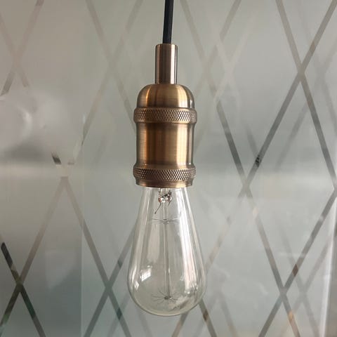 Pendel, Ukendt, Messing guld pendel med sort ledning. Ledningen er lidt nusset, men virker. Deraf den lave pris.
