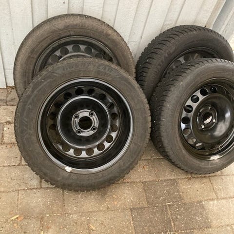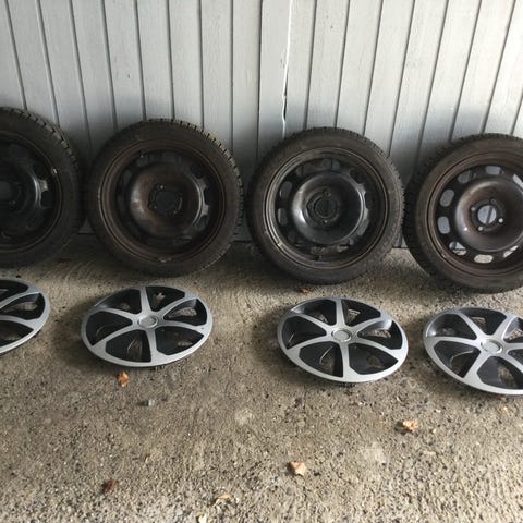 Stålfælge, 15", 5 mønster, fælge med dæk, 4 vinterdæk 186x65 15” har været på en OpelCorsa sælges for kun
