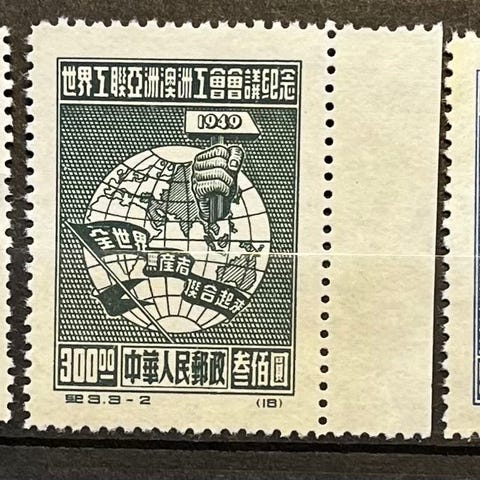 Kina, ustemplet, enkelt mrk. med overtryk, Sjældne 1950-tillæg med flyvende gæs