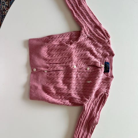 Cardigan, Fin strik , Polo Ralph Lauren, str. 170, Fin cardigan, str. 12-14 år Har lille plet på ærmet.