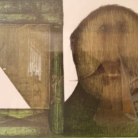 Linoleumssnittet er fra familien til køberen af Munch-Christensens Boghandel og Antikvariat i Vejle. Antikvariatet blev solgt på auktion i 2003. Billedet er i en ramponeret ramme.