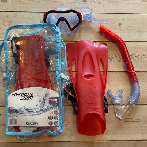 Snorkelsæt til børn m svømmefødder Key west svømmefødder str 26--29, Det hel sælges for 75 kr. ønske kun svømmefødder sælges de for 50 kr