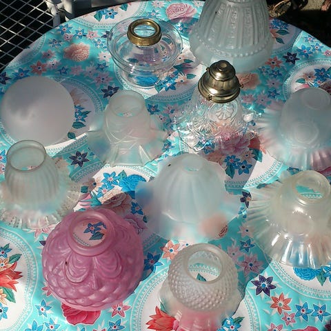 Lampeskærm, Meget smuk lampeskærm i glas,spm ny.Diameter 23cm.