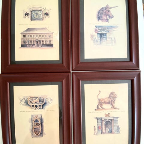 8 stk. litografiske tryk af Mads Stage på kraftigt papir