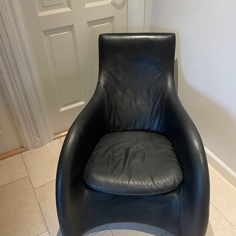 Lænestolen er fra firmaet Montis, designet i 1989 og købt i 1999. Modellen har siden 1989 vundet adskillige designpriser.