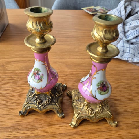 Barok messing, Messing, 1900 år gl., Et par tunge messing stager højde 25 cm i barok smukke på julebordet