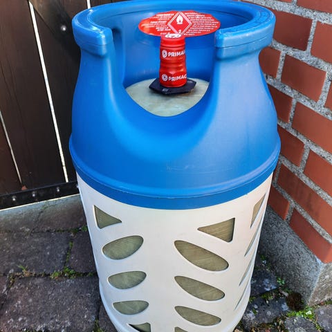 Fuld og plomberet. 5 kg gasflaske / Letvægtsgasflaske i composit .