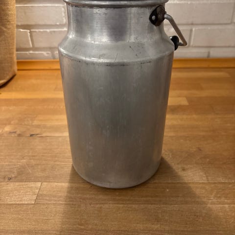 Intakt pedalspand med plastikindsats. Højde 40 cm, diameter 20 cm.
