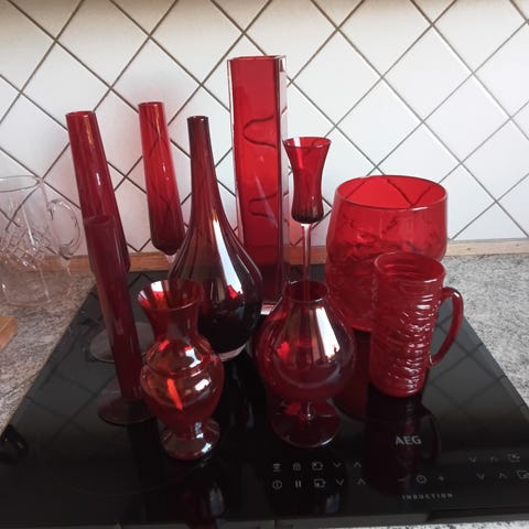 Rødt glas, Flot samling rødt glas. 100 kr pr del