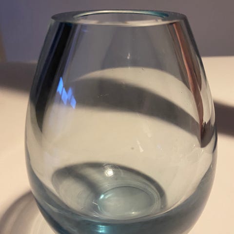 Glas, Vase, Holmegaard Ellipse, Smuk ellipseformet glasklar vase. Modellen hedder "Ellipse" og er elegant designet af Michael Bang for Holmegaard. Højde 12 cm., diameter ca. 9 cm. Fremstår i virkelig fin stand, UDEN brugsspor, ridser, revner, skår eller mærker af nogen art. Sød julegaveidé, kalendergave, adventsgave eller vært/værtindegave med en smuk buket blomster i.