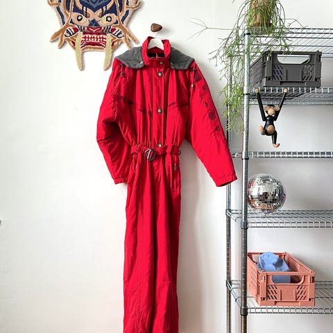 Beautiful unique vintage ski suit in great condition. Rare, never seen anywhere, this winter season you must have it! Made out of very comfortable, strong material. Zipped fastening, 4 outer pockets, has super batwing sleeves and high collar, perfect both for skiing or for casual wear.