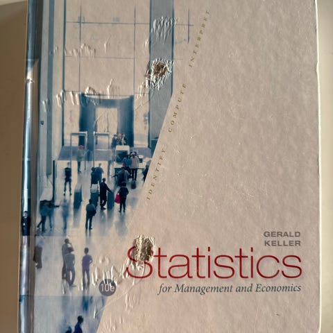 Statistics, Gerald Keller, emne: anden kategori, Statistics for management and economics. Brugt stand. P.11.3