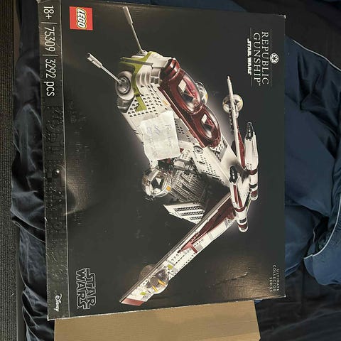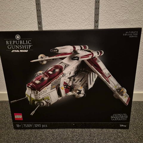 Lego Star Wars, 75309 Republic Gunship, Første udgave af UCS Republic Gunship med printfejl på æsken. Imperial logo i stedet for Republic.