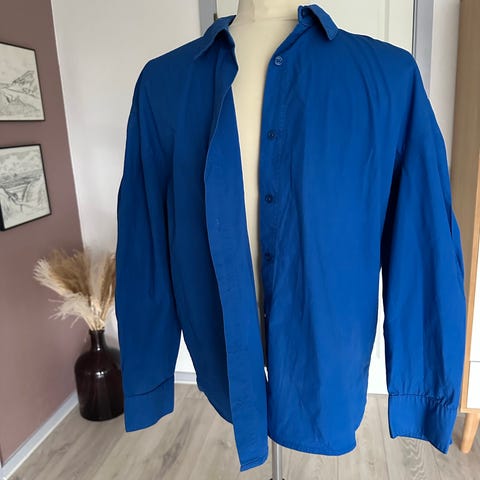 Skjorte, Pull & Bear, str. M, Let, lyseblå skjorte med hvide nister, 100% bomuld.