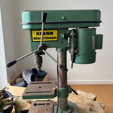 Boremaskine, FLOTT 1-13mm, Boremaskine søjle, Søjleboremaskine på et bord , 1-13 mm borepatron . til 400 V ( 3 faser ) , bordet med 2 skuffer følger . Omdrejninger 400 til 3000 .