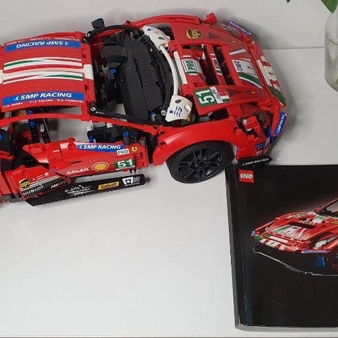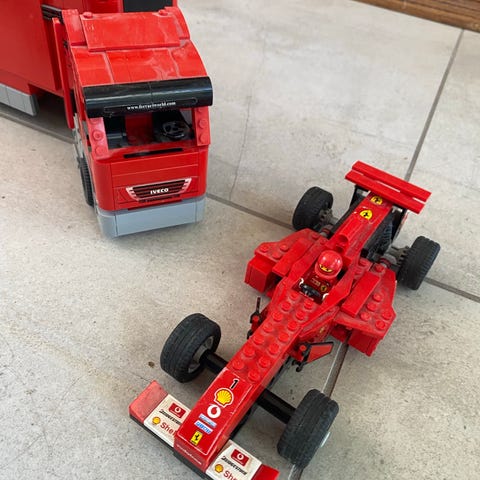 Lego Cars, Ferrari, Min kærestes bil, som han har samlet og ikke leger med mere. Ved ikke, om alt er der. Der er det, som er på billedet :-)