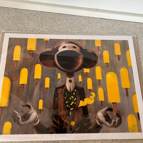 Tryk, Printing Monkey, b: 50 h: 70, Smukkeste tryk signeret af kunstneren.