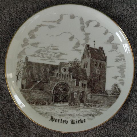 Kirkeplatter og en af Bogense, Bing & Grøndahl, 1 sortering af Faaborg kirke SOLGT Maribo Kirke Nykøbing kirke og en af Bogense platter fra Fyn og med flot guldkant og med brun stregtegning