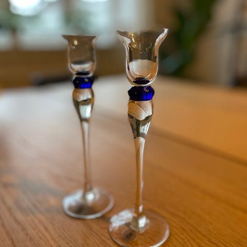 To lysestager fra Iittala, serien Kartio, i mørk grønt glas. Designet af Kaj Franck. Højde 5 cm. Diameter 8 cm. 40kr for begge to. Se også anden annonce med de samme i koboltblå.