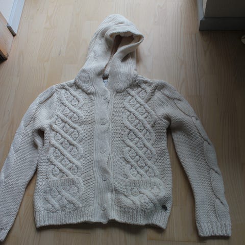 Sweater, Pepe Jeans London, str. 38, Råhvid/lys beige, Næsten som ny, Striktrøje/strikpullover i råhvid/lys beige.