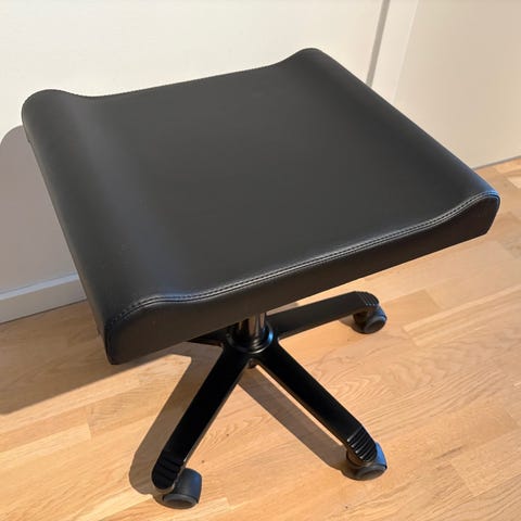 Grå plast. Fremstår helt ny. Perfekt til at hvile fødderne under skrivebordet, så man undgår spændinger.