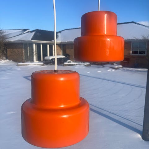 Lamperne er i rigtig fin stand, og komplette med fatninger. Ledning kan jeg montere efter aftale.