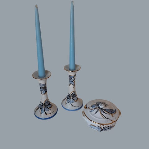 Porcelæn, Lysestage m bladguld, Kjøbenhavns porcellains maleri, Fejlfri stand