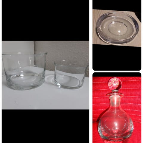 Dekorationsglas, Dekorationsglas 3 stk højde 25cm og vase og Rosti Mepal Melamine bakke længde 39cm bredde 27cm samlet absolut fast pris kan ikke forhandles kr250. Lbagh