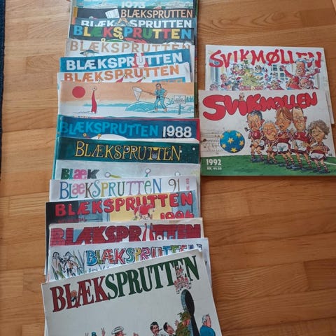 En samling af ældre Blæksprutten og Svikmøllen hæfter sælges samlet. Nogle uden forside og med afklip. Meget smukke illustrationer.