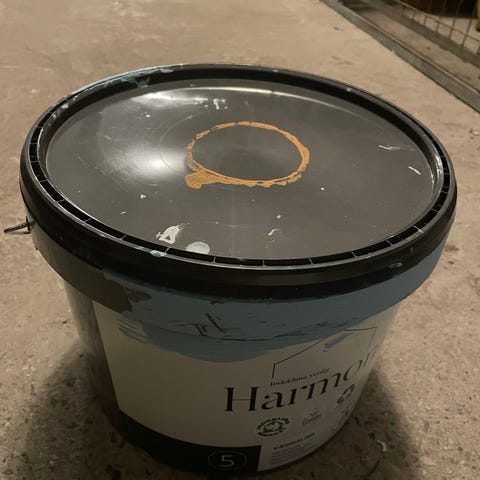 Maling, Sneakerifinish halvblank c - Røverkøb, 2,25 liter, Sort - Nova M168, Litermålet er, hvad der oprindeligt var i malingen :-) Se på billedet, hvor meget, der er tilbage.