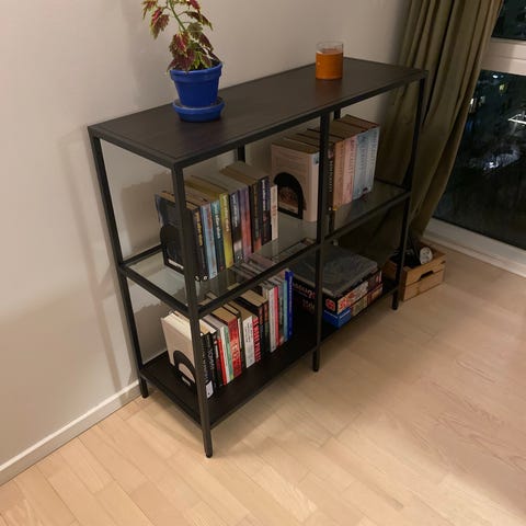 , b: 190 d: 45 h: 45, Flot sort reol til opbevaring af bøger / tøj . 8 rum/ 4 rum . Har været brugt til TV og brugskunst . / bøger. 250kr alle hylder kan flyttes .