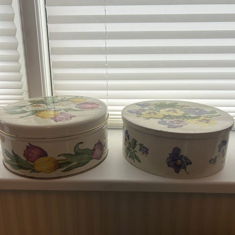 Dåser, Gamle blomsterdåser, Fine gamle store blomster dåser i flotte farver.